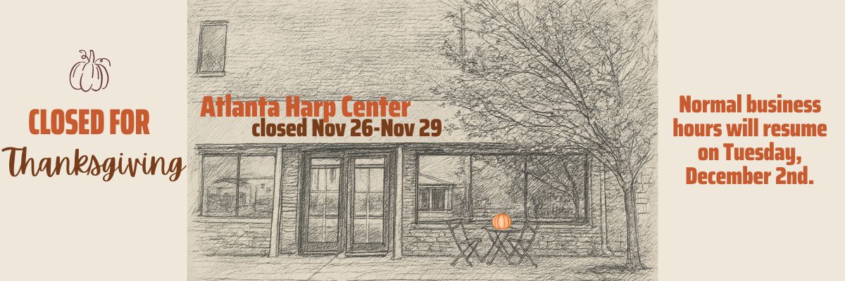 Atlanta Harp Center is the Southeast's largest showroom for new, used and consignment pedal and lever harps from Lyon & Healy, Salvi, Camac, Dusty Strings, and Venus. Offering a unique Rent-to-Own Lever Harp rental program. Schedule your appointment to visit our showroom, conveniently located in Alpharetta, GA, to shop for your next harp. We also carry a large selection of harp music and harp accessories, from strings and benches to tuners and tuning keys.