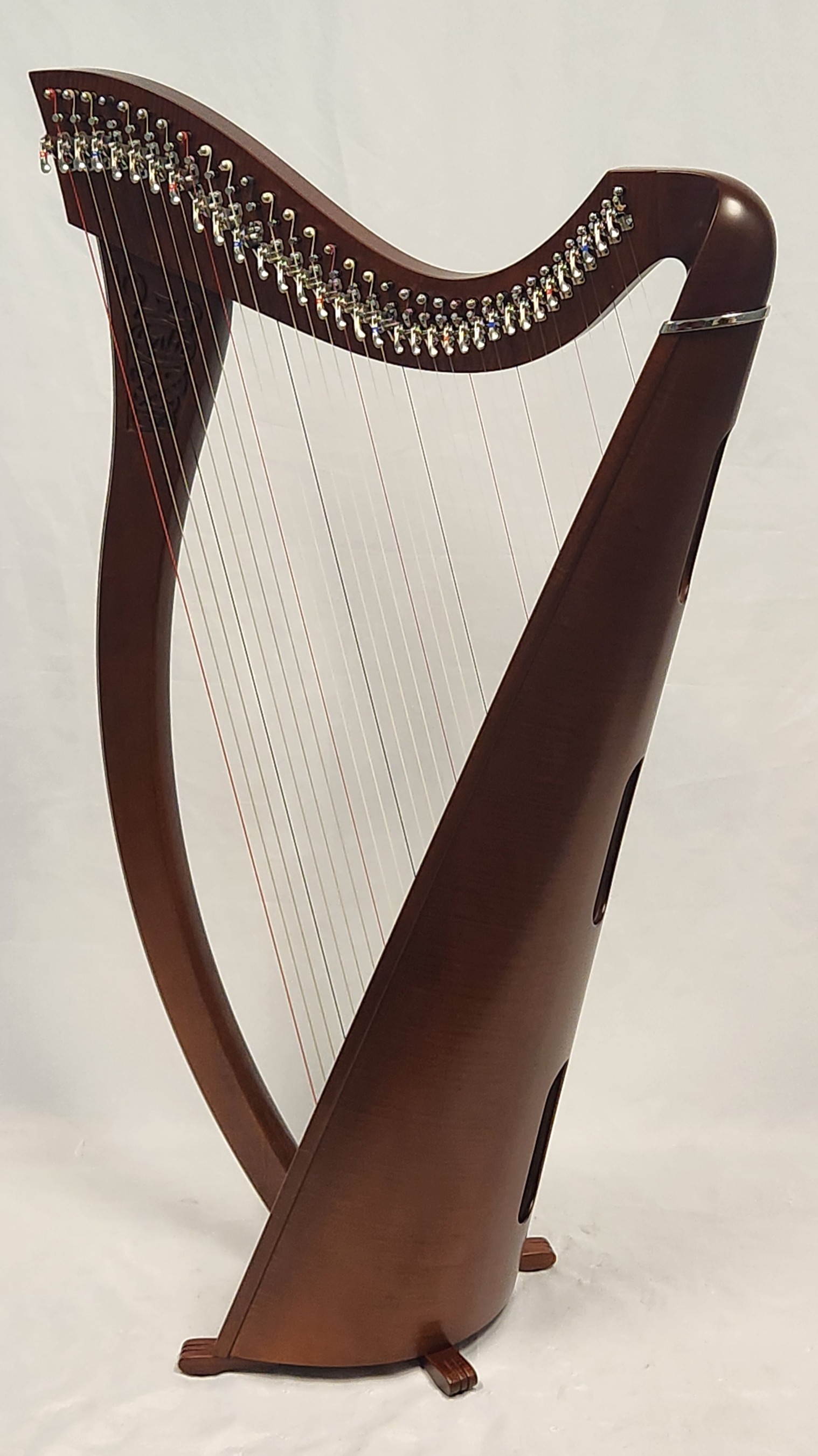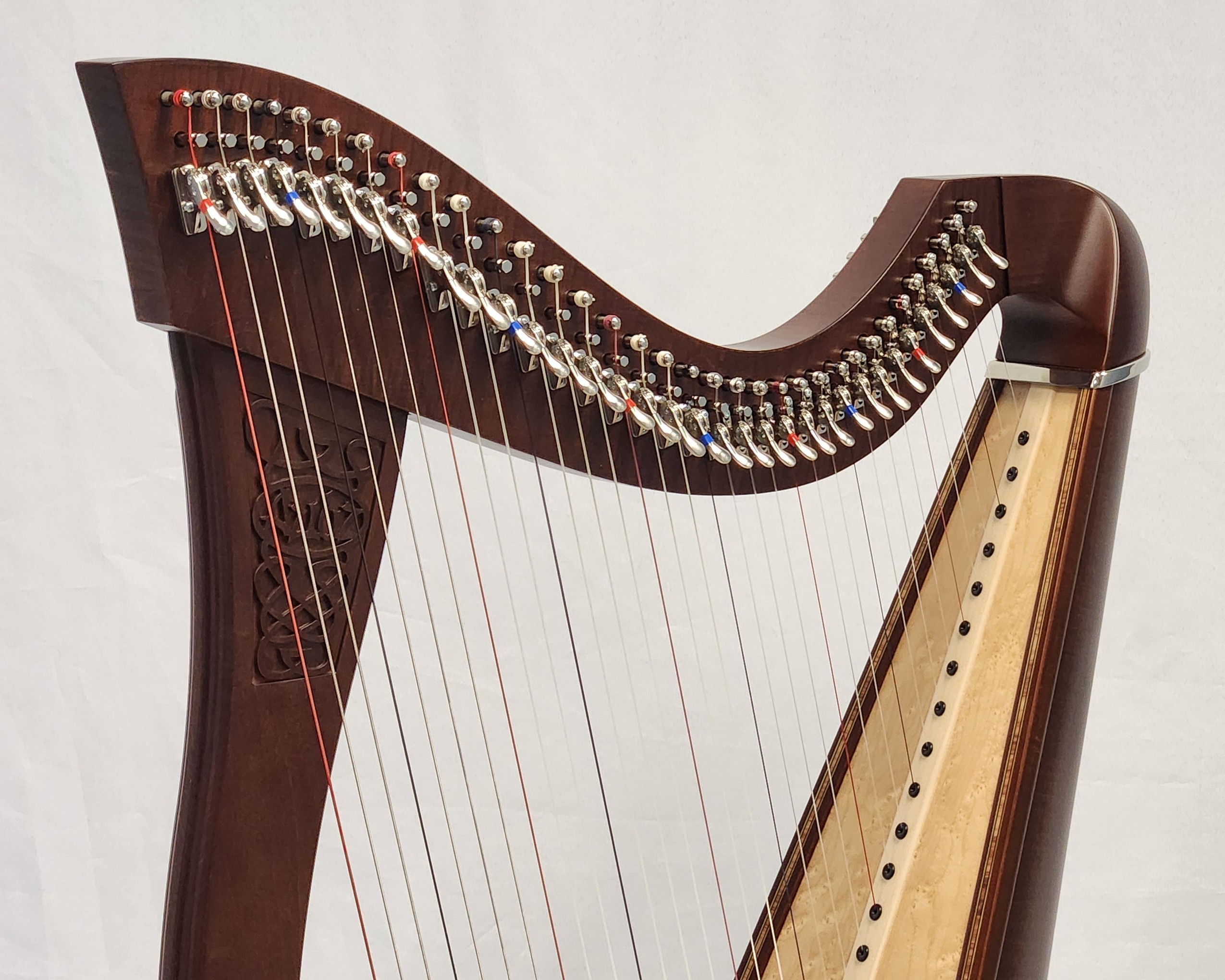 The upgraded Aziliz integrates Camac’s latest acoustic and aesthetic improvements into a compact, easy to transport harp. It maintains traditional elements of a folk harp, ideal for professional Celtic harpists and students. Light tension fluorocarbon strings provide a warm, clear sound and facilitate quick, precise ornamentation. This small Celtic lever harp includes a full set of high quality Camac levers.