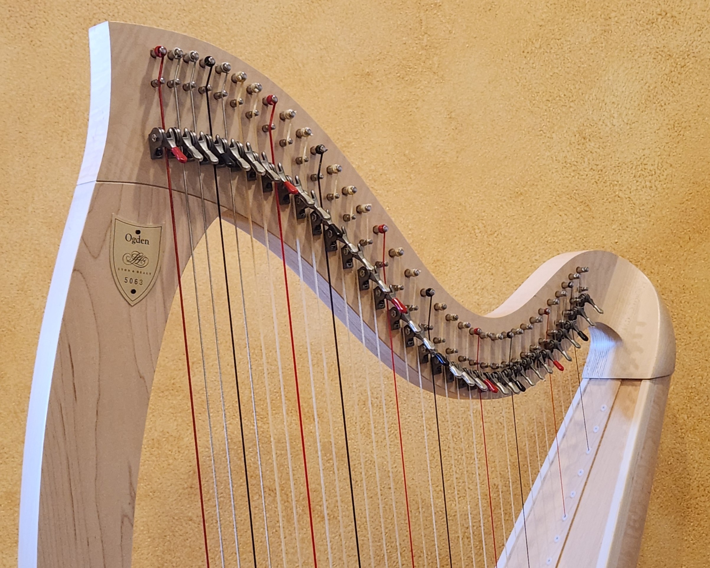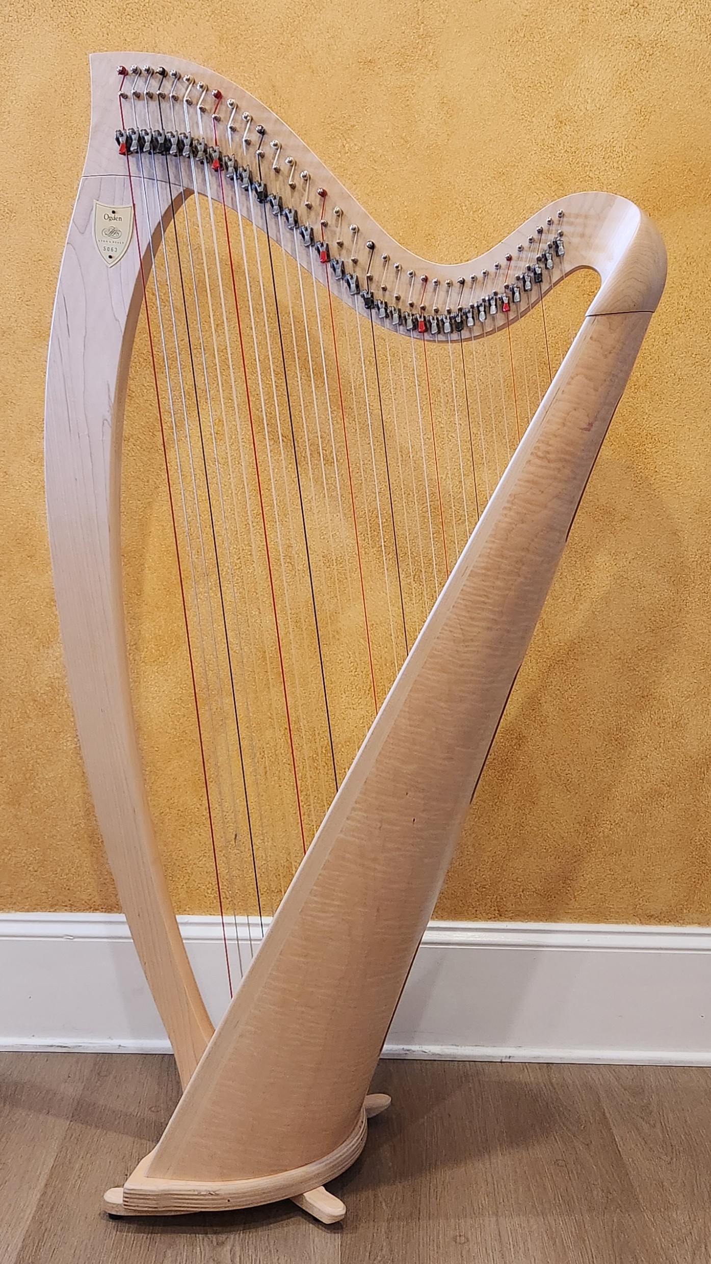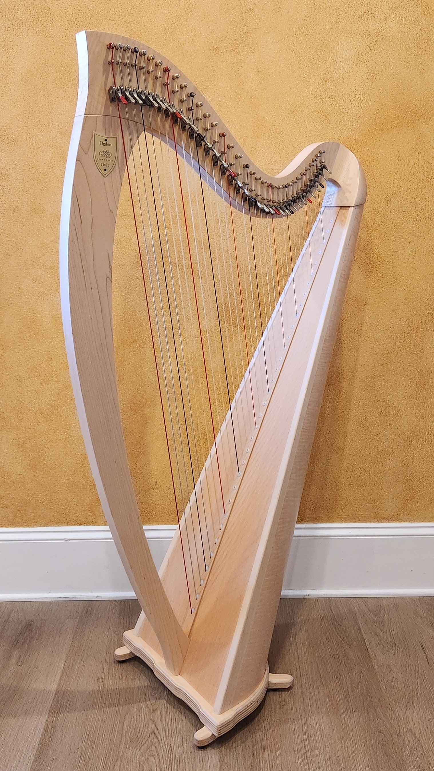 This pre-owned Lyon & Healy Ogden was built in 2024 and includes a carrying case, 4" and 8" legs and tuning key. It was restrung in 2025 and is in excellent structural and cosmetic condition.