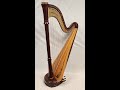 The harp is in good structural condition and includes a transport body cover and tuning key. It was regulated in July 2025. There is slight clicking in the action.