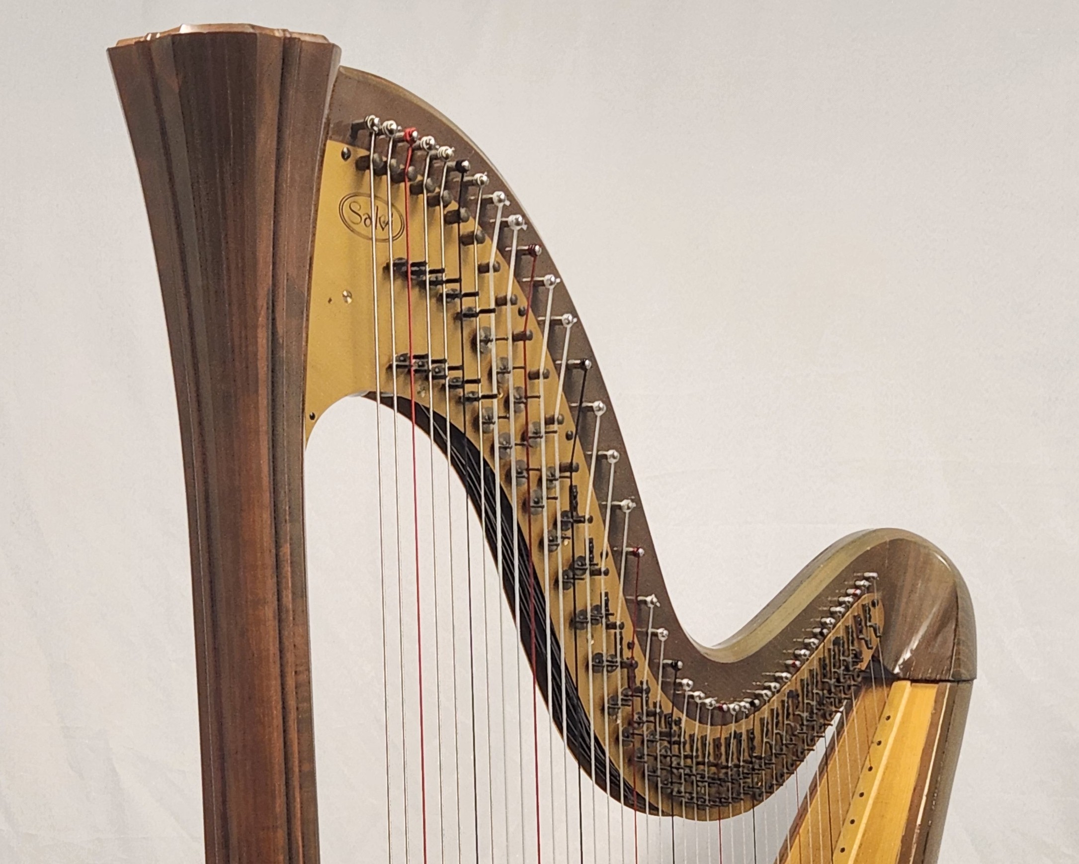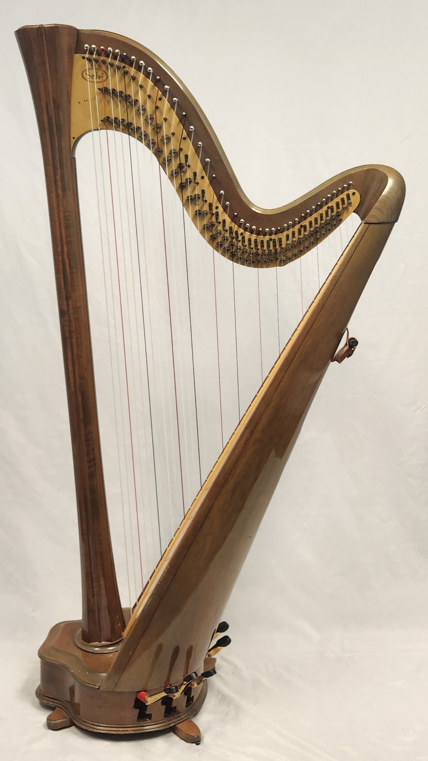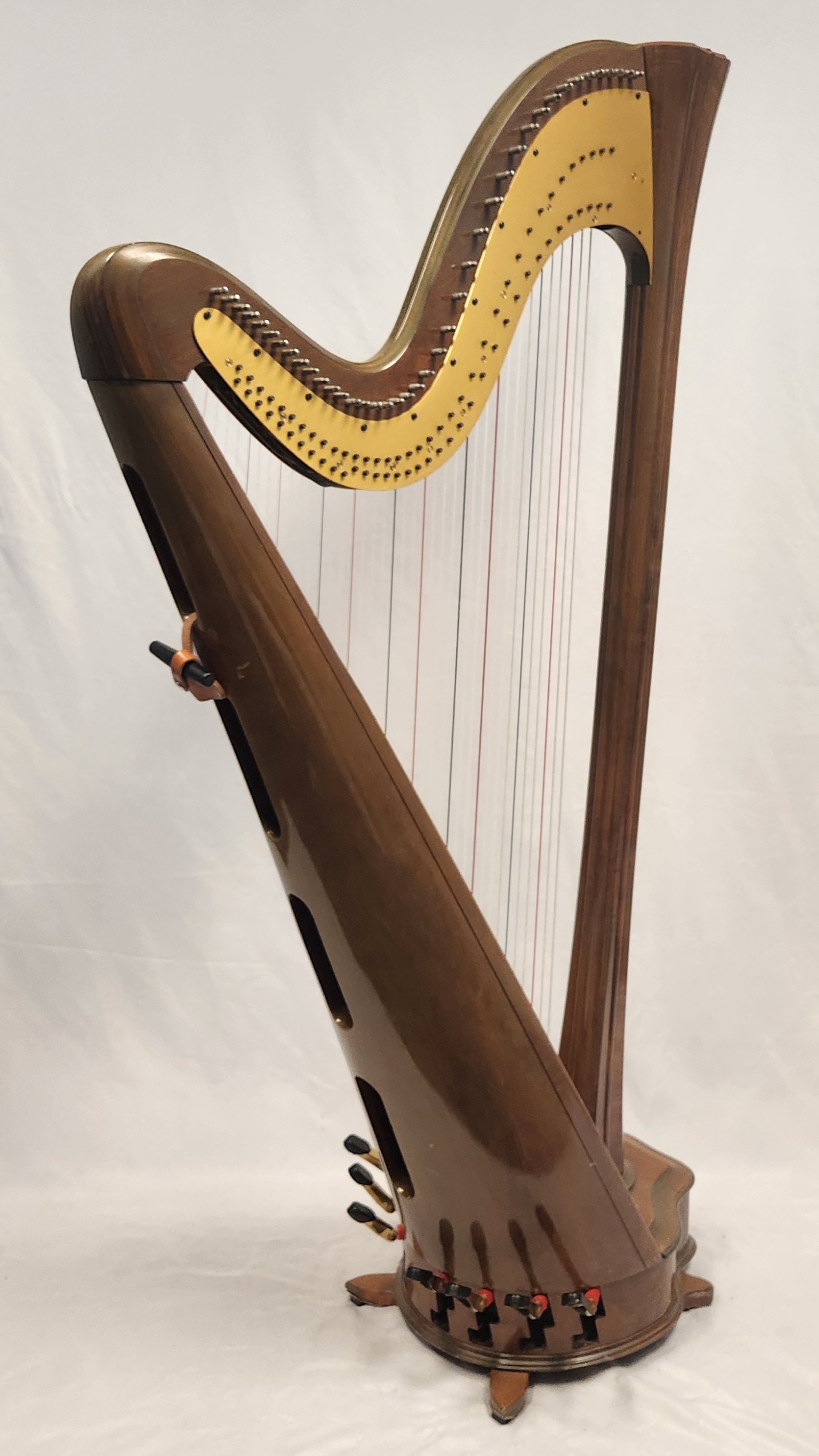 This harp was built in 1990 and was restrung in January 2026. It is currently strung with full nylon and wire strings making it the perfect option for harpists looking for a lower breakage rate to the more common concert gut option. It comes with a dust cover, tuning key with holster, music stand, and stool making it an affordable, all-in-one package!